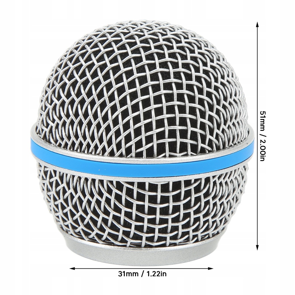 4. Rozmiar głowicy kulowej mikrofonu grilla: wysokość tej wymiennej kratki mikrofonu wynosi 51 mm / 2,00 cala, a średnica wewnętrzna to 31 mm / 1,22 cala.