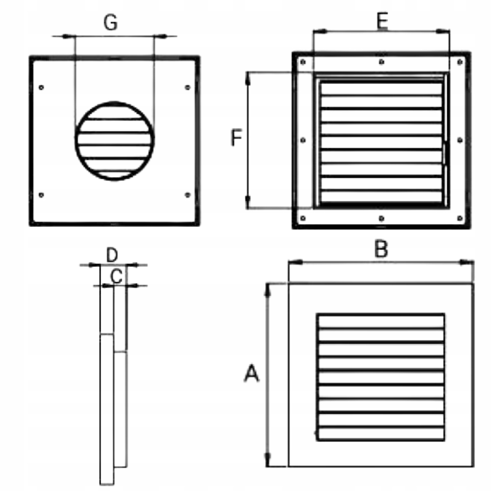 Kwadratowa kratka wentylacyjna z żaluzją mechaniczną. Umożliwia regulację ciśnienia na całej długości kanału wentylacyjnego. Materiał, z którego została wykonana jest odporny na uszkodzenia. Kratka wentylacyjna posiada żaluzję otwieraną i zamykaną poprzez jeden sznurek.