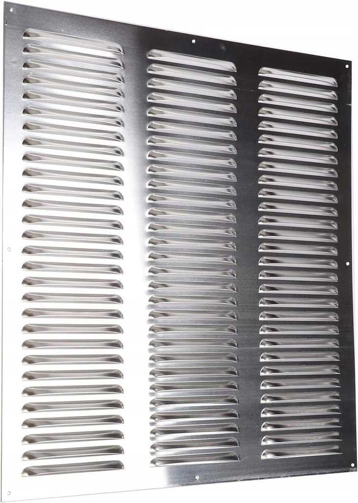 - Wymiary zewnętrzne tej kratki wentylacyjnej wynoszą 600 mm dł. x 600 mm szer. Grubość: 1,5 mm.