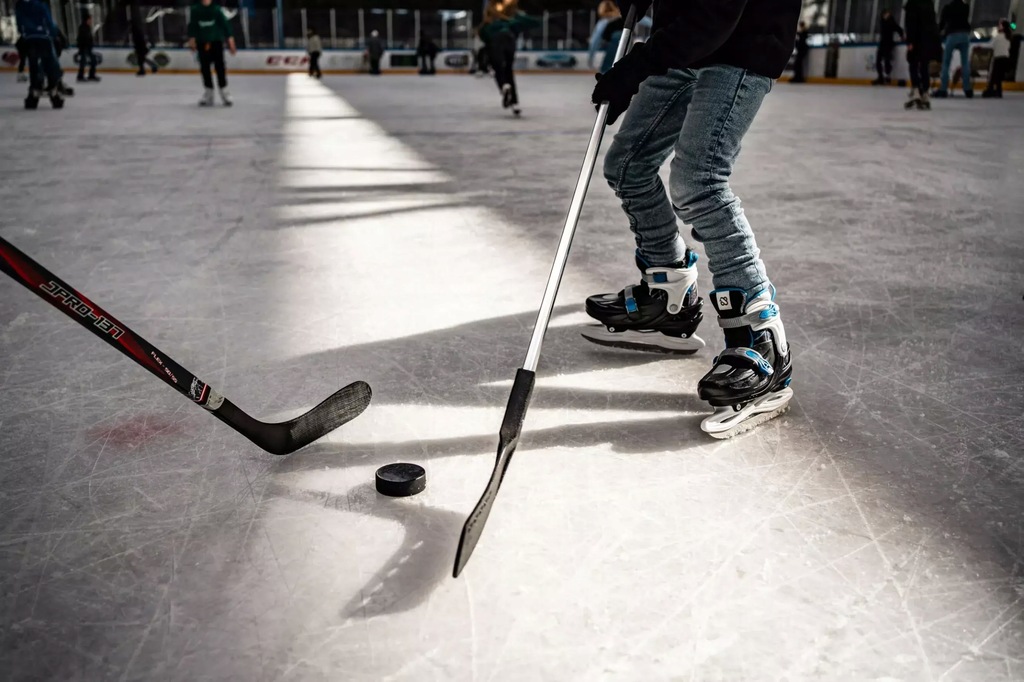 Czarny krążek do hokeja na lodzie marki Nijdam. Gumowy krążek ma średnicę około 7,5 cm i grubość około 2,5 cm. Jego waga wynosi około 160 gramów.