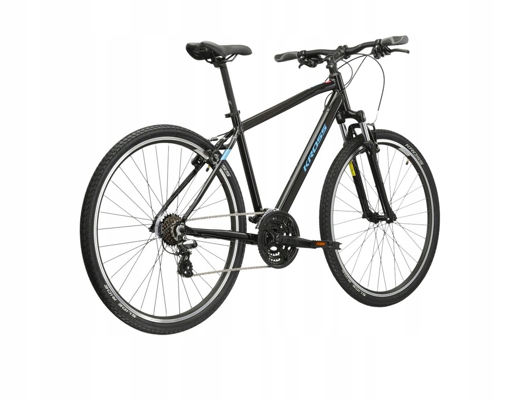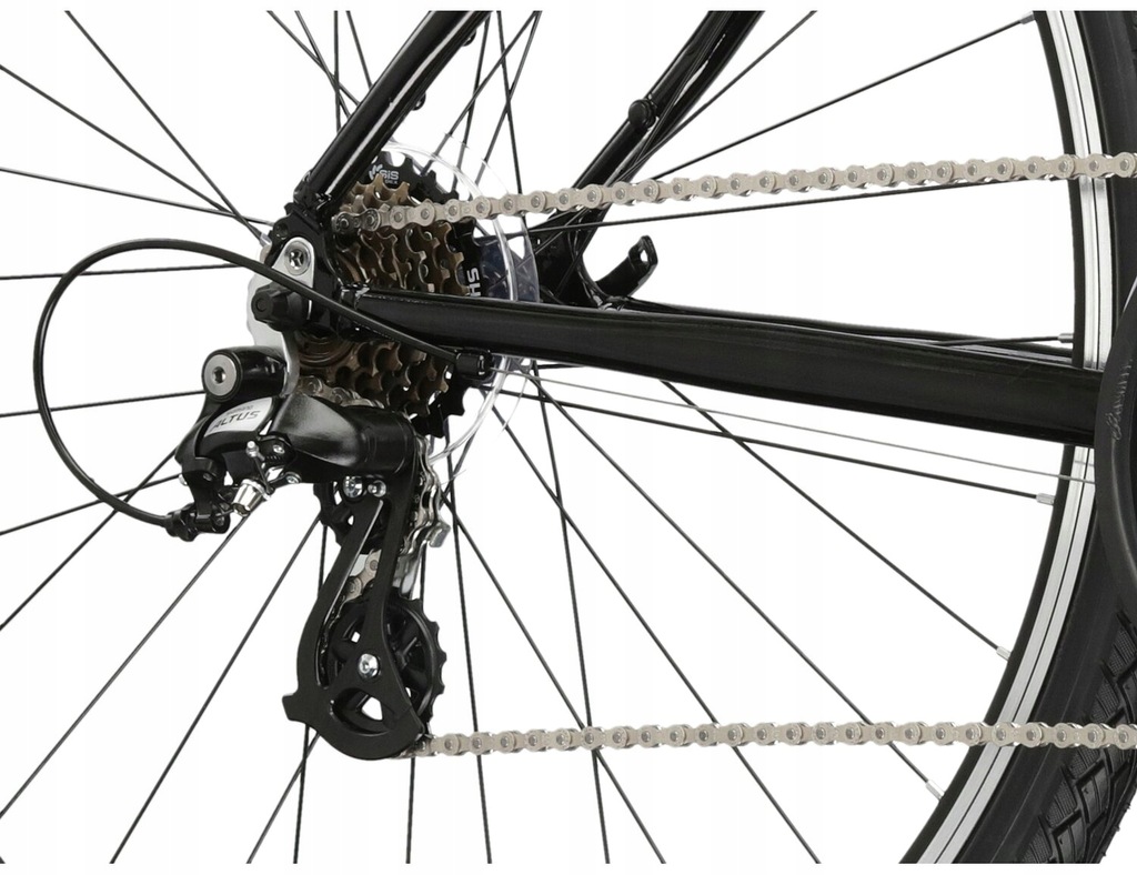 KROSS Evado 2.0 został wyposażony w osprzęt Shimano. Japoński producent stworzył manetki, przerzutki oraz kasetę idealnie dostosowane do przemierzania zarówno miasta, jak i leśnych ostępów. Dlatego znajdziesz go w swoim KROSS Evado 2.0. Tylna przerzutka Shimano Altus M310 zapewni Ci obsługę 7 biegów, co przy wsparciu trzyrzędowej korby daje 21 przełożeń. Taka konfiguracja pozwoli Ci dobrać odpowiednią kadencję do aktualnej sytuacji na drodze, łatwo pokonywać podjazdy oraz rozwinąć wysokie prędkości na płaskim. KROSS Evado 2.0 został wyposażony w amortyzowany widelec SR Suntour M3010 o skoku 50 milimetrów. Dzięki takiemu rozwiązaniu podczas jazdy po nierównościach zachowamy komfort i unikniemy nadmiernego zmęczenia wynikającego z ciągłej pracy naszego ciała na wybojach. Pozwoli ci to dotrzeć na miejsce szybciej i mniej zmęczonym. KROSS Evado 2.0 posiada 28 calowe koła, które pozwolą na sprawne przemieszczanie się zarówno po mieście jak i po leśnych ścieżkach.