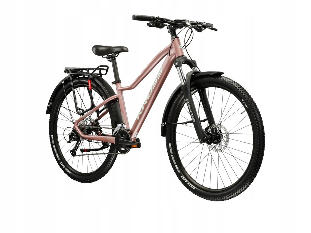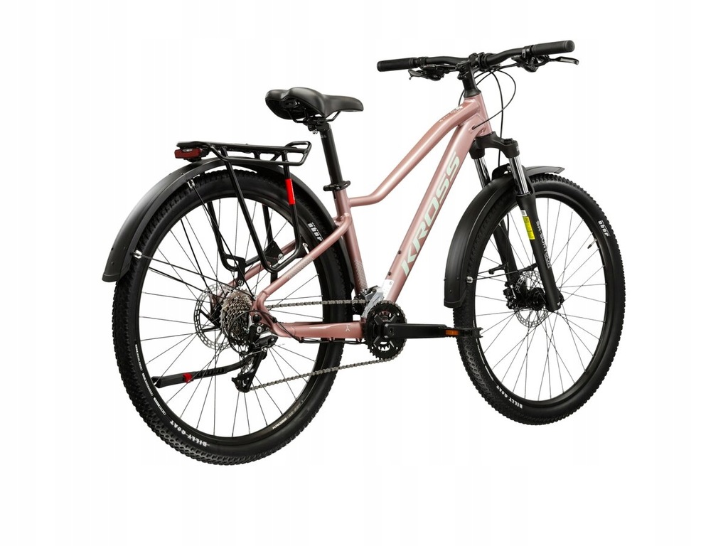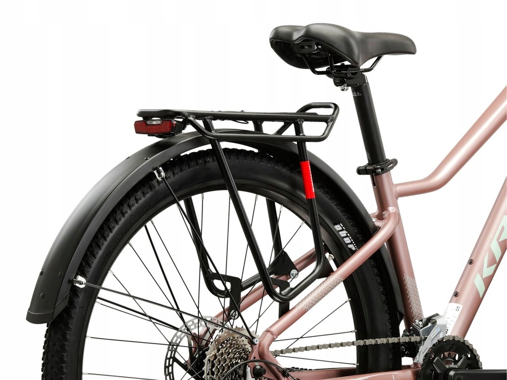 Wersja EQ(equipped) naszego roweru KROSS Lea 4.0 EQ została dodatkowo wyposażona w przydatne akcesoria. Zintegrowane z rowerem oświetlenie ułatwi jazdę po zmroku, a bagażnik umożliwi przewożenie niezbędnego ekwipunku, czy też montaż dodatkowych sakw. Do kompletu trafił również system pełnych błotników, który zapewnia doskonałą ochronę przed błotem, a podpórka eliminuje konieczność szukania oparcia dla roweru.