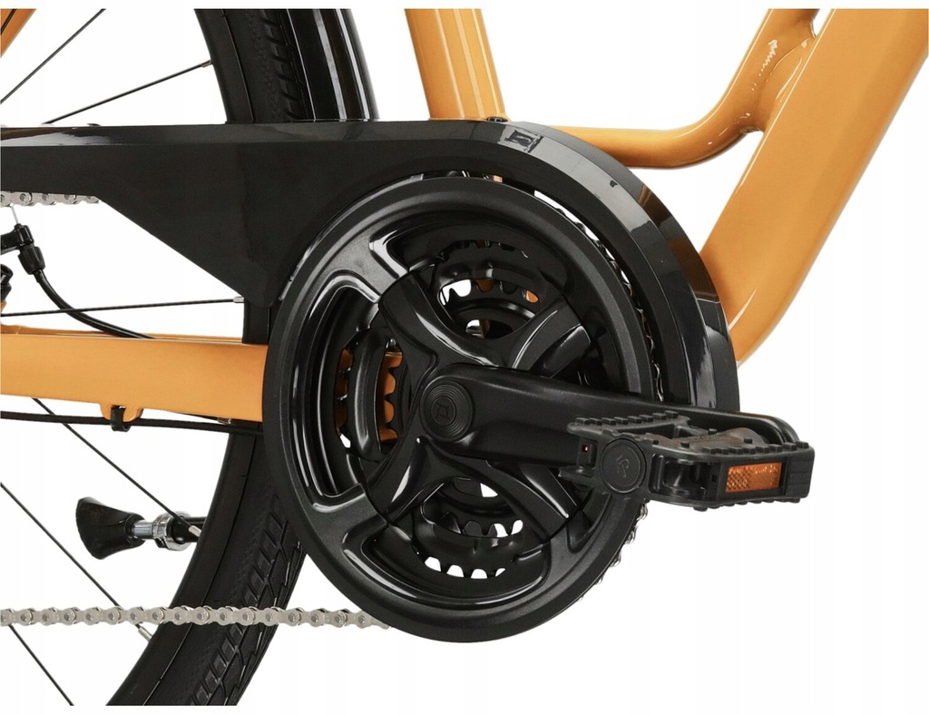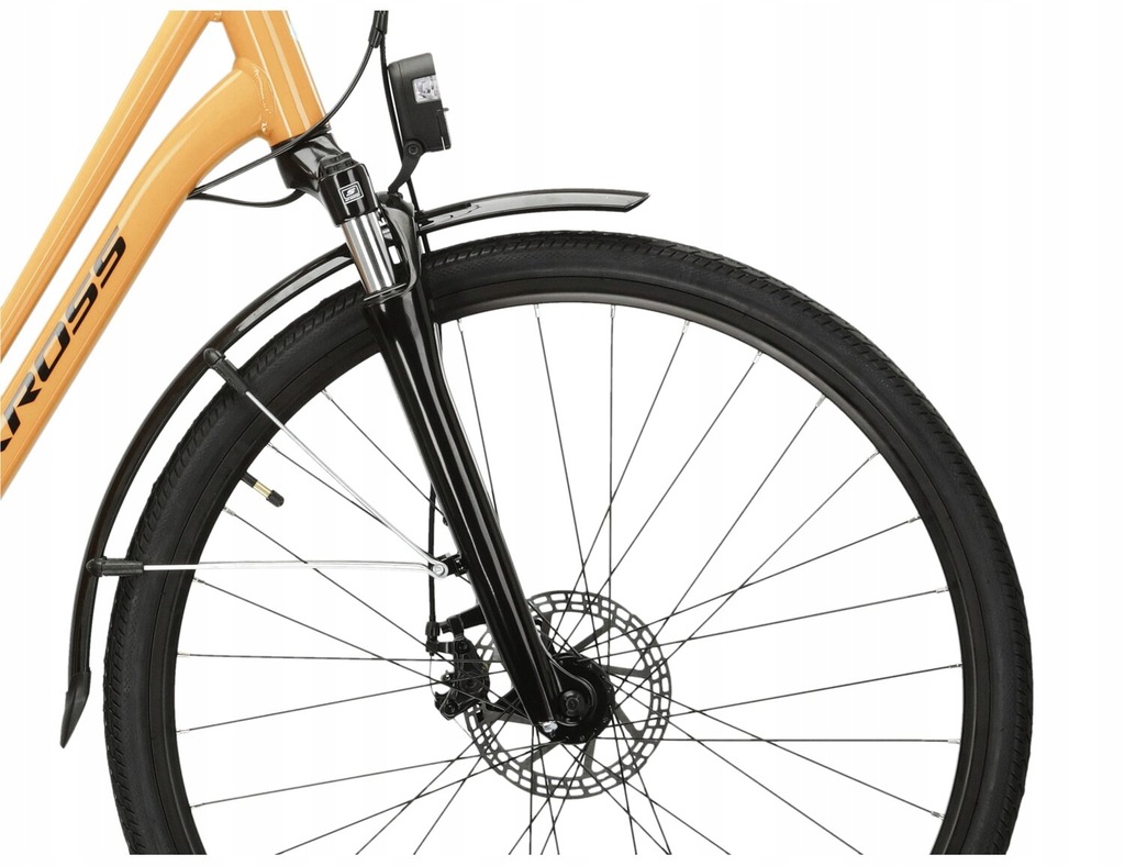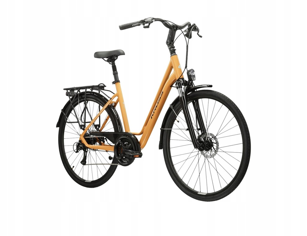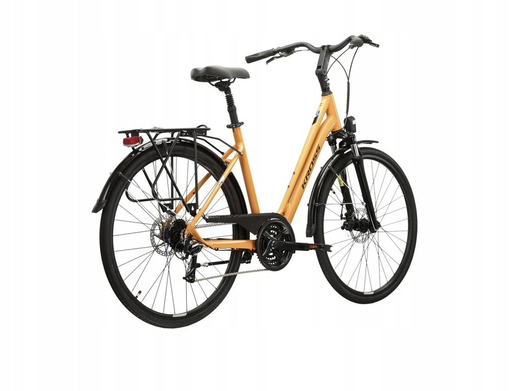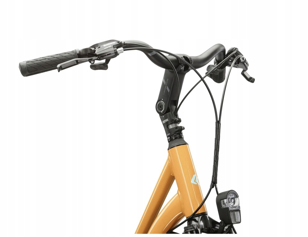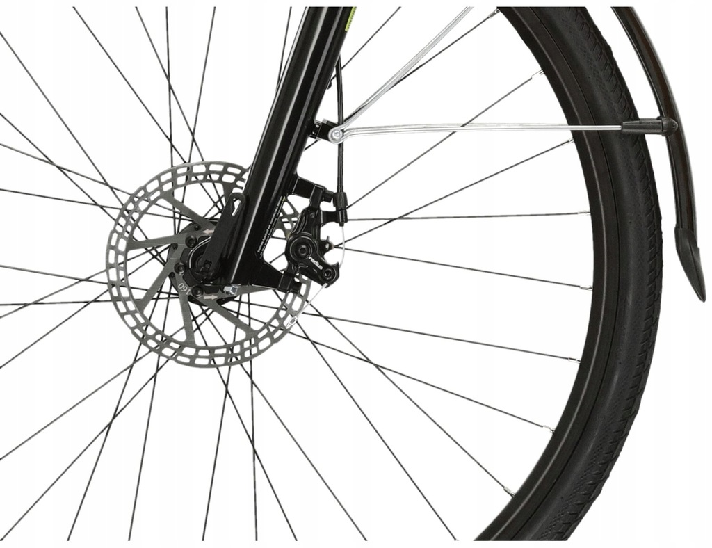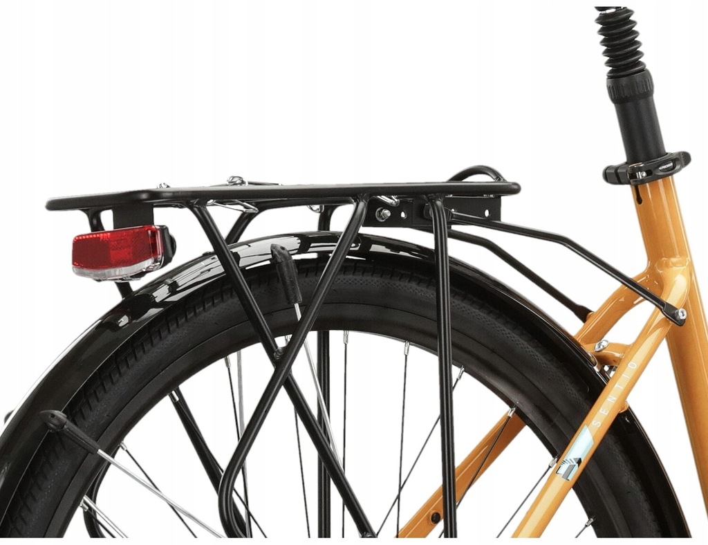 Zintegrowane z rowerem oświetlenie ułatwi jazdę po zmroku, a wysokiej jakości siodełko zachwyci Cię komfortem, jaki zaoferuje Ci podczas pokonywania długich tras. Dodatkowo, siodło zostało osadzone na amortyzowanej sztycy, co niweluje drgania powstające podczas jazdy po nierównościach.W rowerze miejskim nie mogło zabraknąć solidnego i stabilnego bagażnika. Umożliwia on przewożenie dodatkowego bagażu, a także nie będzie problemem montaż na nim dodatkowych sakw. Do kompletu trafił również system pełnych błotników, który zapewnia doskonałą ochronę przed błotem.