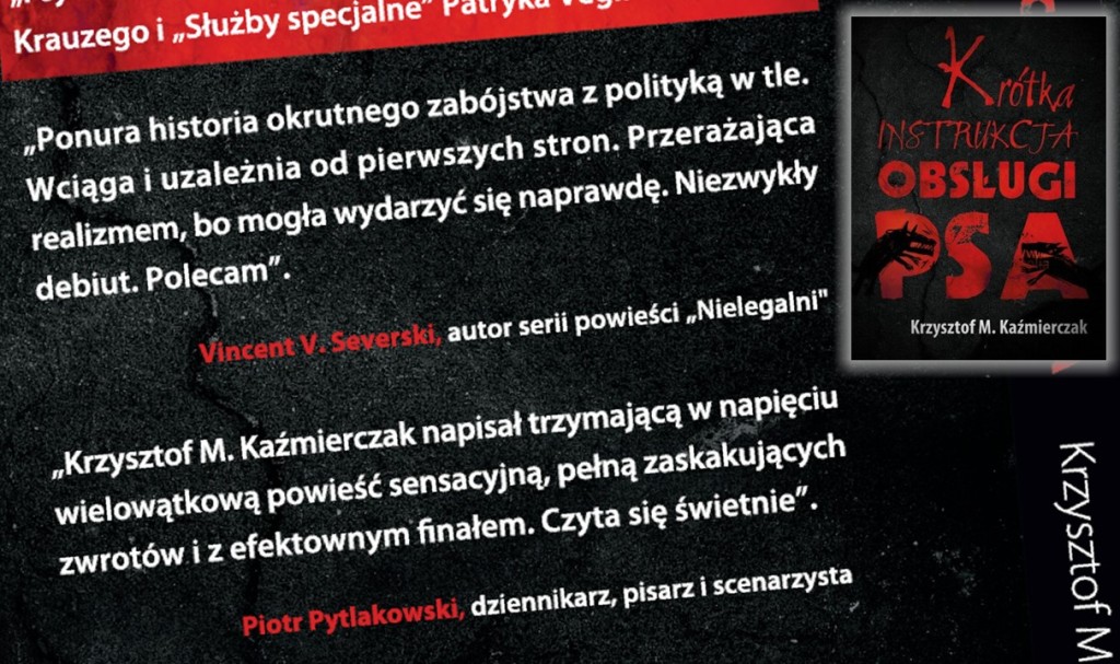 Zaskakująca intryga, filmowe tempo i zwroty akcji. „Krótka instrukcja obsługi psa” zaczyna się tam, gdzie kończą się „Psy” Władysława Pasikowskiego, „Gry uliczne” Krzysztofa Krauzego i „Służby specjalne” Patryka Vegi.