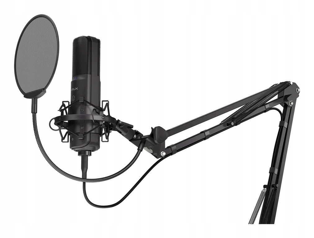 KRUX Esper 1000. Model: Mikrofon stołowy, Częstotliwość mikrofonu: 20 - 20000 Hz, Przepływność: 16 bit. Technologia łączności: Przewodowa, Interfejs urządzenia: USB, Obsługiwany typ USB: USB Typu-A, USB Type-C. Kolor produktu: Czarny, Materiał obudowy: Metal, Typ kontroli: Przyciski. Źródło zasilania: USB, Rodzaj baterii: Wbudowana bateria. Szerokość produktu: 50 mm, Głębokość produktu: 45 mm, Wysokość produktu: 180 mm