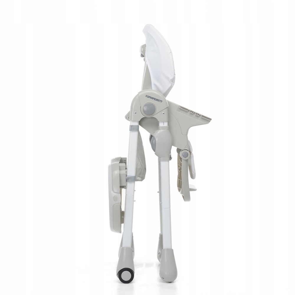 Na początku krzesełko do karmienia Foppapedretti może służyć jako leżaczek podczas karmienia niemowlaka. Następnie regulacja siedziska pozwala nam na ustawienie odpowiednio oparcia krzesełka, aby mogło ono służyć zarówno do posiłków jak i służyło nam do spędzania wolnego czasu na grach i zabawach. Krzesełko posiada metalową ramę, pozostałe części wózka zbudowane są z tworzyw sztucznych.