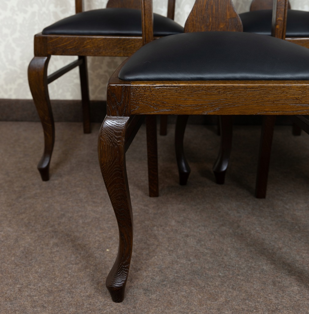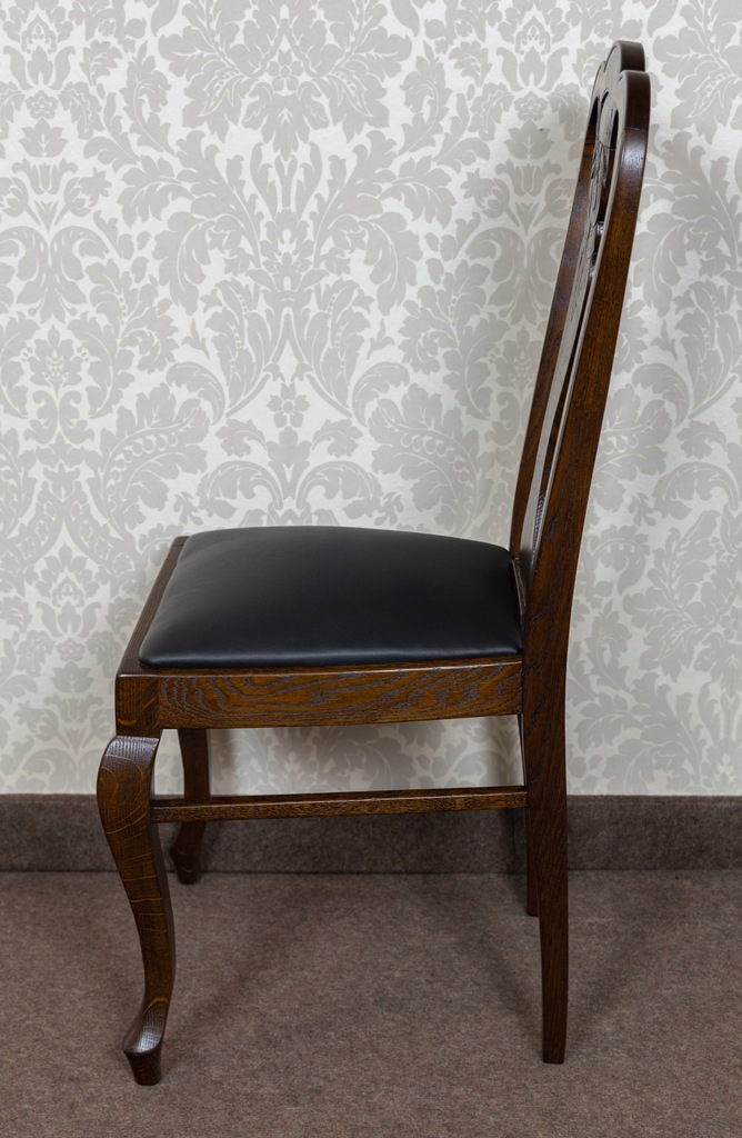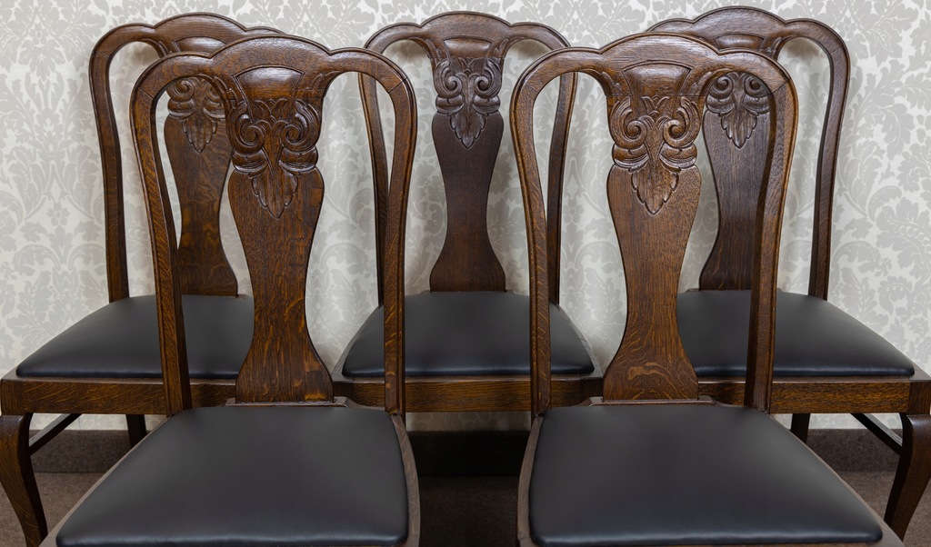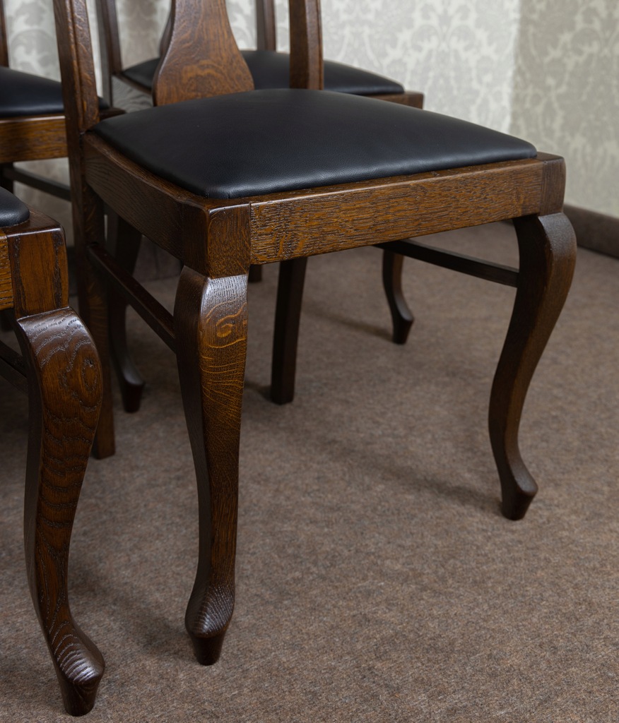 Komplet składa się z pięciu sztuk krzeseł. Meble pochodzą z Polski i datowane są lata 20-te XX wieku.