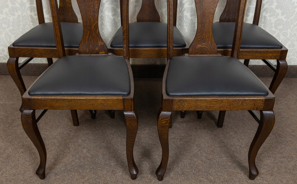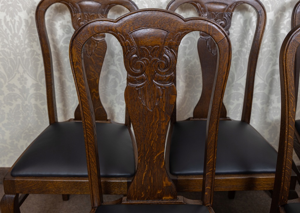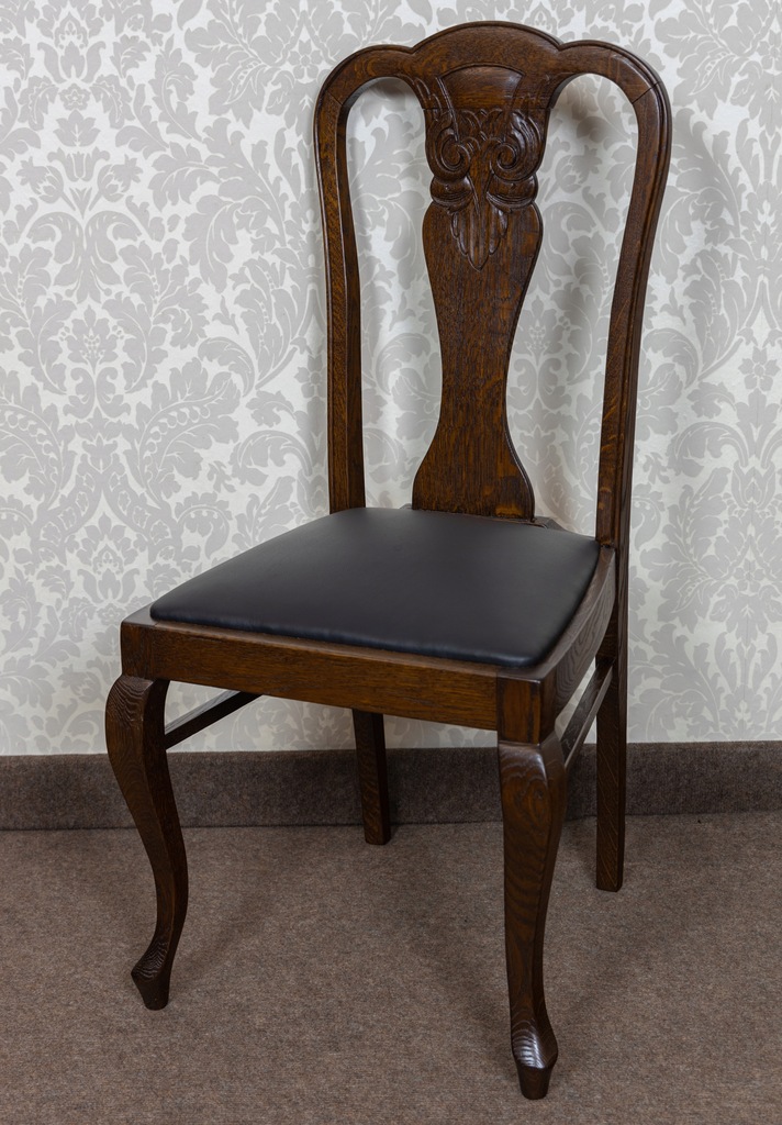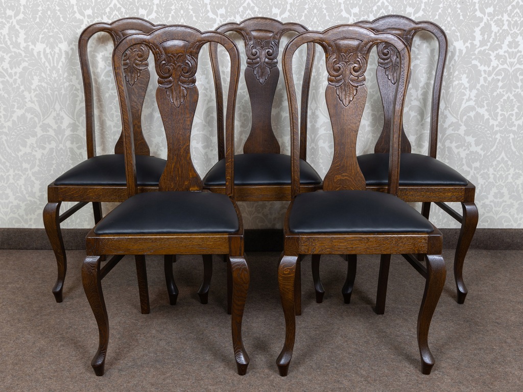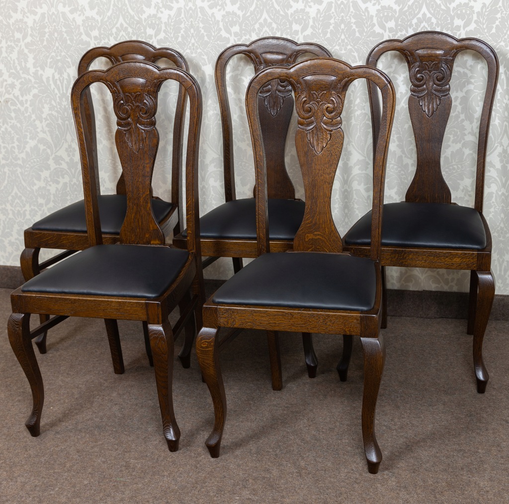 Komplet składa się z pięciu sztuk krzeseł. Meble pochodzą z Polski i datowane są lata 20-te XX wieku.