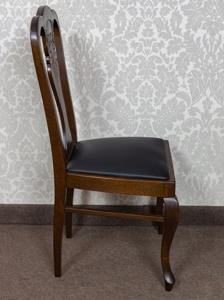 Krzesła swój wygląd zawdzięczają nie tuzinkowemu stylowi neobaroku dla podkreślenia, którego zastosowano czarną skórę naturalną, która wniesie do wnętrza dużo elegancji i szyku.