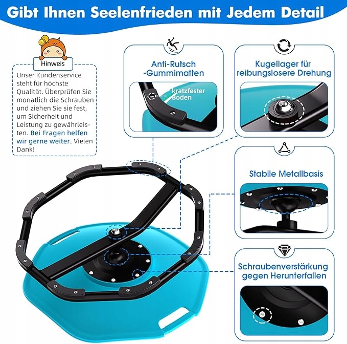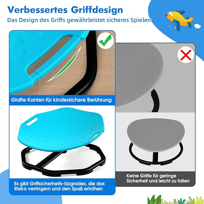 - 【Mocne i wygodne wzornictwo】Metalowa podstawa tego krzesła sensorycznego jest wyposażona w antypoślizgową gumową podkładkę, która zapewnia stabilność dziecięcego krzesła obrotowego i pozwala dzieciom bawić się bezpieczniej. Zaokrąglona i pogrubiona krawędź jest wygodna w trzymaniu, nie martw się, że dzieci zostaną zranione podczas użytkowania. To krzesło może udźwignąć ciężar 75 kg.