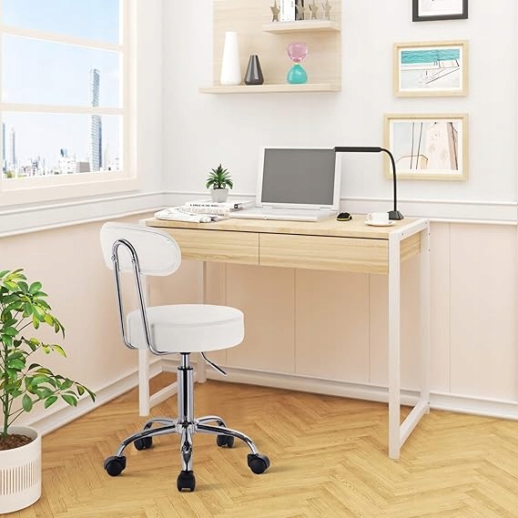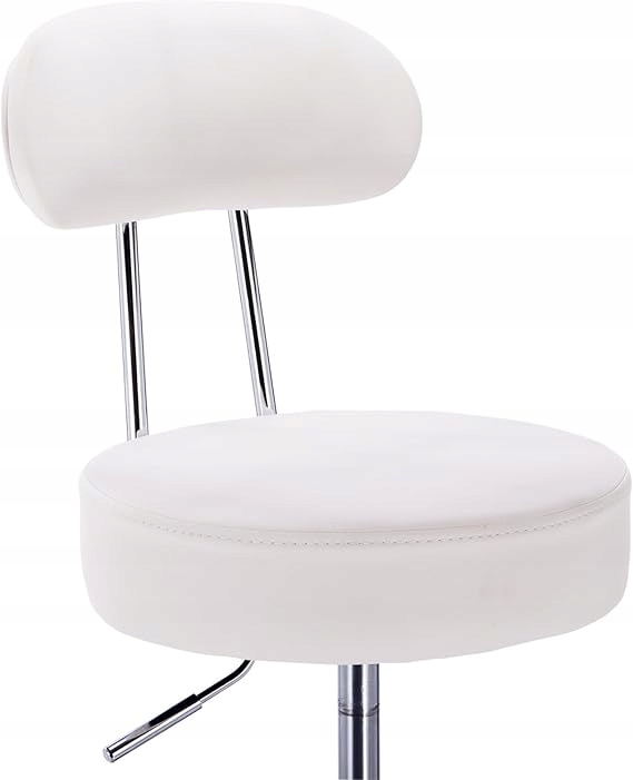 Stołek do makijażu z regulacją wysokości z kółkami i oparciem Biały stołek roboczy Obrotowy stołek 360° Krzesło biurowe Stołek kosmetyczny do warsztatu, salonów kosmetycznych, studiów, tatuażu