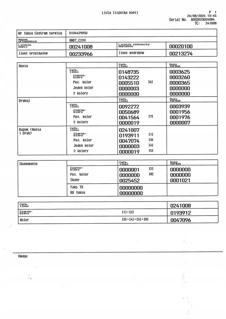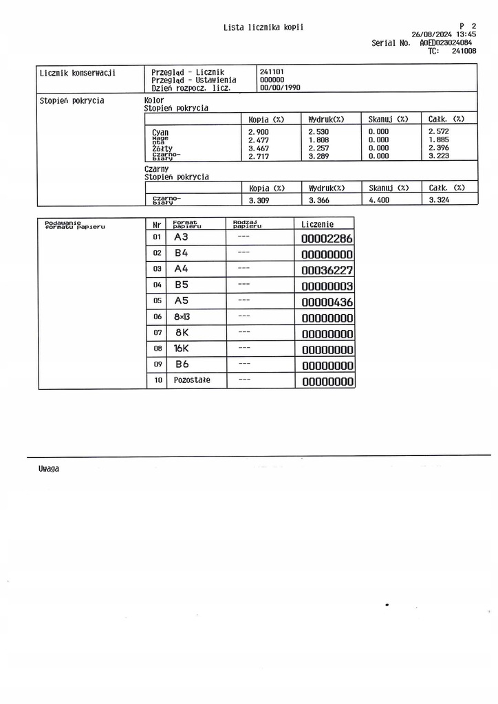 Kserokopiarka posiada polskie menu ekranowe, nie posiada polskiej nakładki.