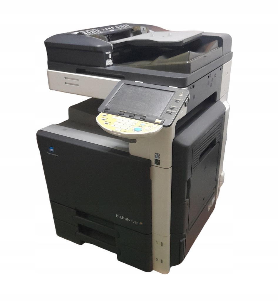Konica Minolta Bizhub C220 to urządzenie pełniące funkcje zarówno kolorowej kopiarki i drukarki sieciowej, jak i kolorowego skanera. Sprawnie i szybko wykonuje codzienne czynności związane z drukowaniem, kopiowaniem i wykańczaniem formatów od A6 do A3. Posiada możliwość zszywania, dziurkowania, składania i sortowania.