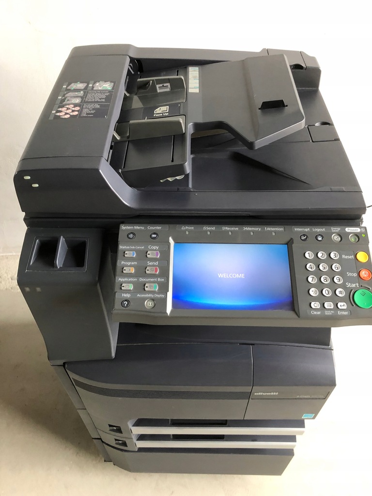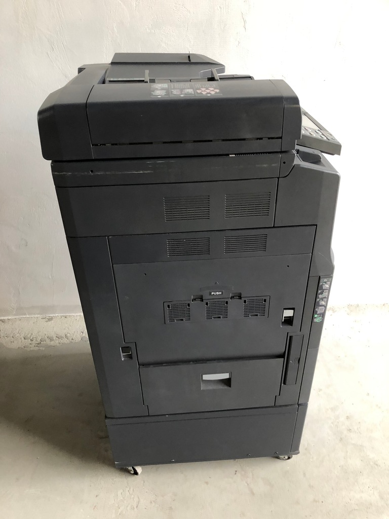 Wizualnie kserokopiarka wygląda bardzo dobrze jednak po włączeniu wyświetla błąd C-3300 widoczny na siódmym zdjęciu. Wcześniej drukowała oraz wyświetlał się komunikat - czas na konserwację. Być może wystarczy standardowy przegląd i wszystko będzie działać poprawnie ale nie gwarantuję. Osobiście się na takim sprzęcie nie znam i sprzedaje w takim stanie jak jest.