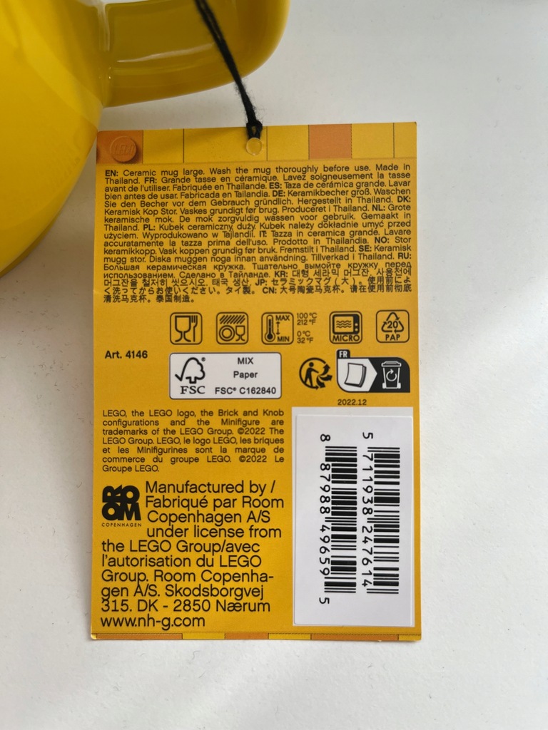 Ciesz się ulubionymi napojami z tego zabawnego ceramicznego kubka. Ten żółty kubek o pojemności 530 ml jest idealny, gdy trzeba zrobić sobie przerwę w budowaniu swoich ulubionych klocków LEGO