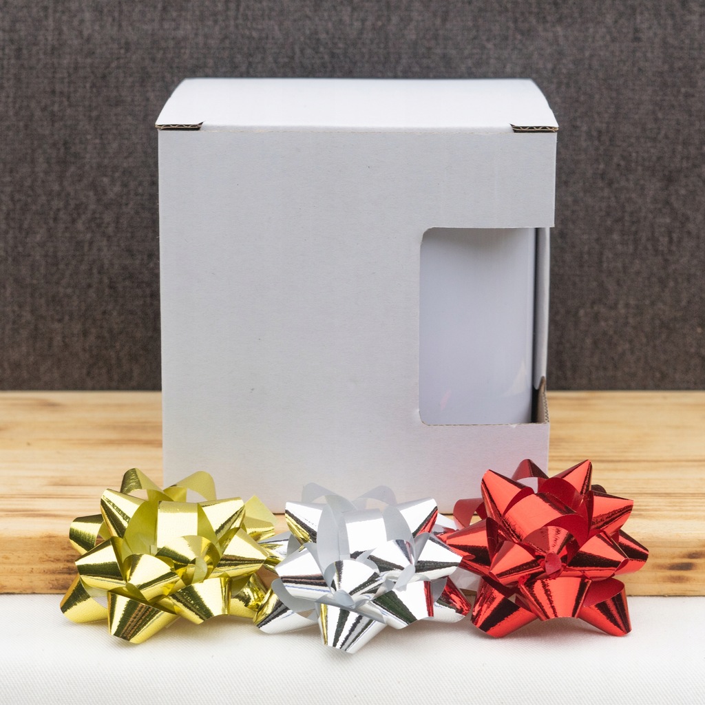 - białe pudełko z wyciętym okienkiem, z pewnością zabezpieczy twój prezent!