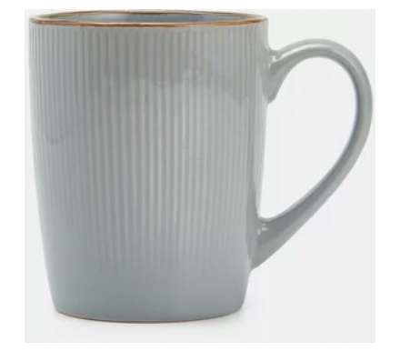 Ceramiczny kubek z dekoracyjnym żłobieniem. Poręczne ucho gwarantuje stabilny uchwyt podczas picia gorącego napoju. Idealny na poranną kawę lub ziołowy napar.