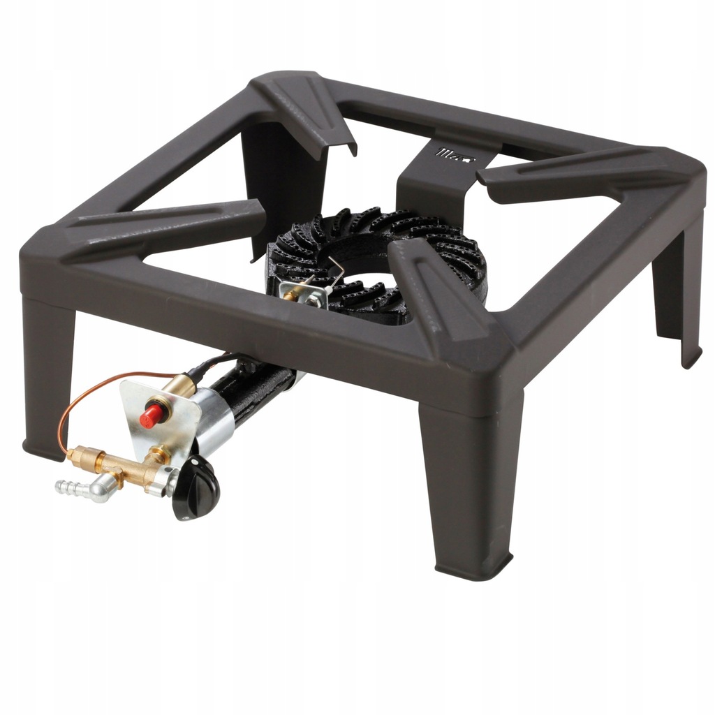 Kod : 2102TP Wysokiej jakości kuchenka gazowa MEGA ZEUS czeskiego lidera w produkcji urządzeń gazowych firmy MEVA istniejącej od 1898r Taboret grzewczy do użytku przemysłowego w gastronomii oraz w przemyśle Niezwykła moc 7,7 kW urządzenia pozwala na szybkie gotowanie potraw w dużych ilościach Kuchnia wyposażona jest w żeliwny palnik gazowy zamontowany na podstawie 40x40cm co pozwala na stosowanie garnków o średnicach 20-50cm. Taboret gazowy jest wyposażony w piezo-zapalnik oraz termo-bezpiecznik co znacznie ułatwia użytkowania i zwiększa bezpieczeństwo użytkowania. Parametry techniczne Kategoria gazowa urządzenia: I3B/P(30) - urządzenie przeznaczone do opalania gazem płynnym, mieszanką propan/butan. Zasilanie: G30 - propan/butan / LPG (butle 2 - 10kg) Ciśnienie gazu: 30mBar Moc całkowita: 7,7 kW Ilość palników: 1 Zużycie znamionowe gazu: 505 g/h Waga urządzenia: 7 kg Wymiary: 410 x 410 x 185 mm Maksymalna gwarantowana nośność: 70 kg Minimalna średnica garnka: 200 mm Maksymalna średnica garnka: 500 mm Szacowany czas pracy przy butli: 2kg - 4h / 5kg - 10h / 10kg - 20h Piezo zapalnik: tak Termo bezpiecznik: tak W zestawie: - kuchenka MEGA ZEUS TP - akcesoria do podłączenia butli 5kg i 10kg (wąż, 2 opaski zaciskowe, regulator ciśnienia)
