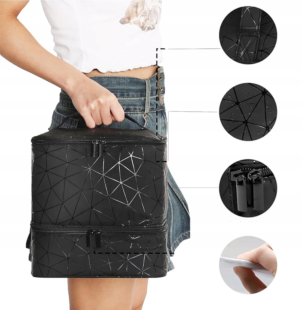 - Rączka do wygodnego przenoszenia kosmetyczki