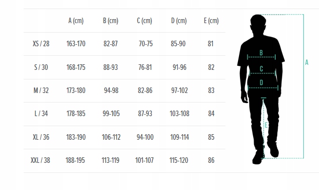 - Zip Tech® - system umożliwiający spięcie za pomocą zamka kurtki ze spodniami na odcinku od biodra do biodra