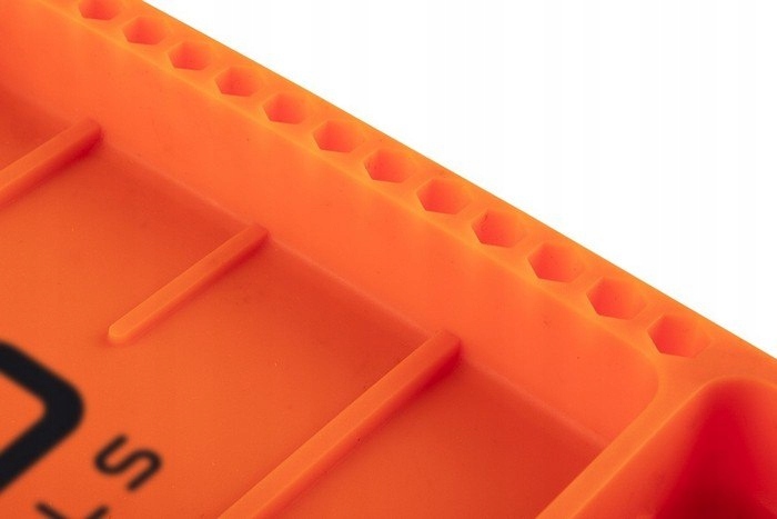 Charakteryzuje się wymiarami 27,5 x 14,5 x 2,5 cm oraz głębokością 20 mm, zapobiegającą wypadaniu narzędzi. Posiada 3 praktyczne kieszenie i 15 uchwytów na bity. Za sprawą materiału zapewnia przechowywanym w niej akcesoriom ochronę przed obiciem.