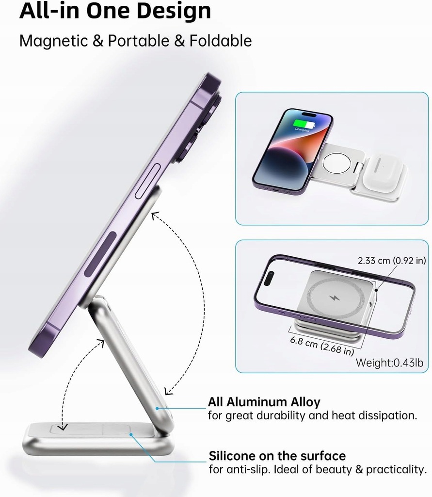 ✅ Składana Konstrukcja, Idealna do Podróży: Większość ładowarek jest ograniczona do użytku domowego lub biurowego i nie sprawdza się w podróży. X40 to wyjątkowo kompaktowy model, gotowy do każdej podróży. Złóż go na płasko do poziomego ładowania lub rozłóż jako elegancką, pionową stację ładowania.