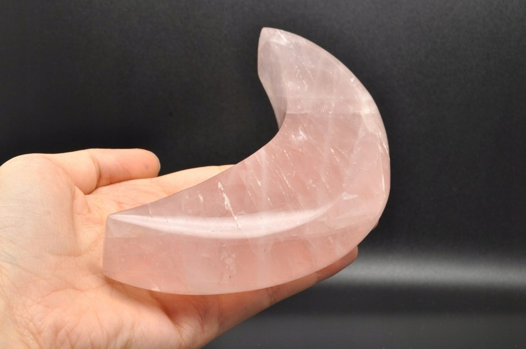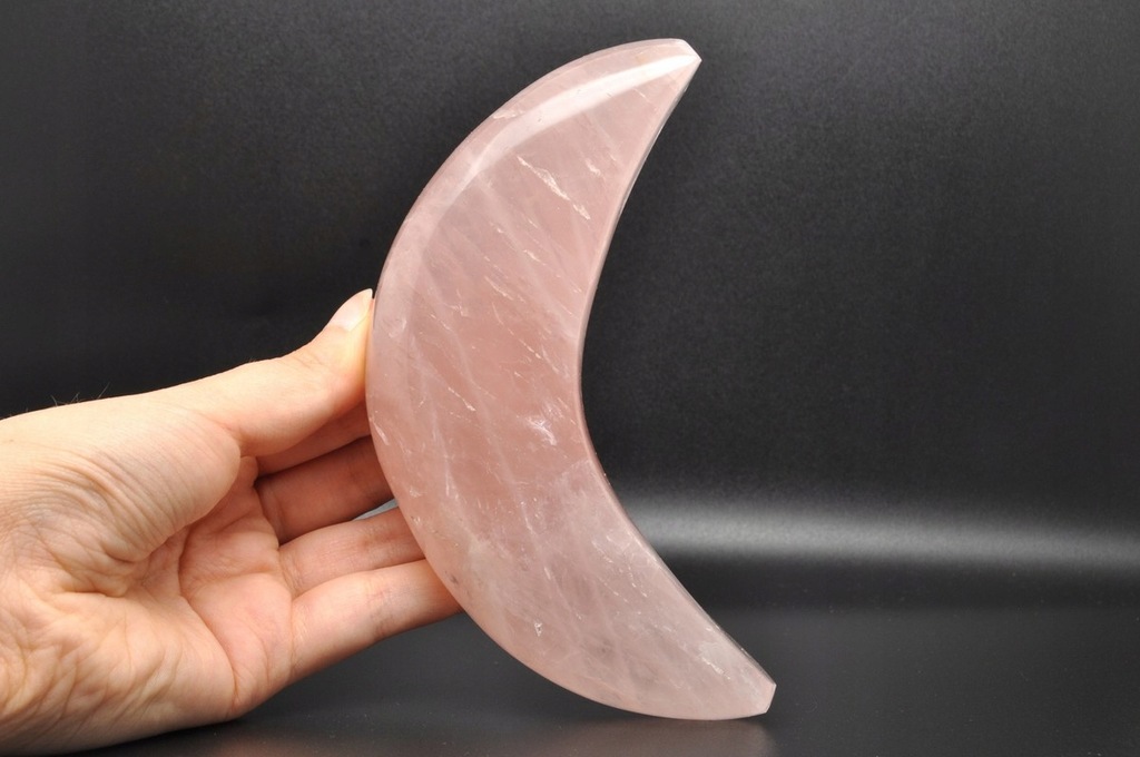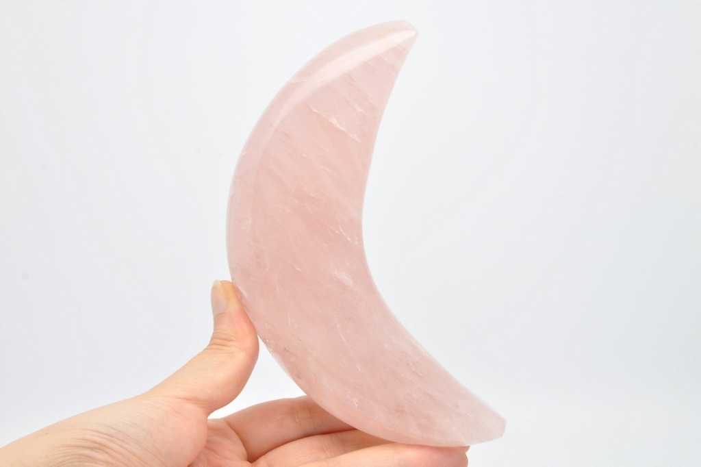 NATURALNY KWARC RÓŻOWY W FORMIE KSIĘŻYCA. POLEROWANY I SZLIFOWANY OKAZ IDEALNY NA PREZENT, DO KOLEKCJI ORAZ JAKO DEKORACJA.