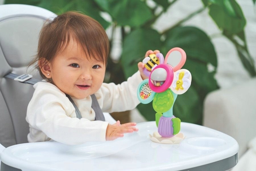 Kolorowy kwiatuszek to wiele różnych zabaw dla maluszków. Każdy z obracanych płatków zawiera niespodziankę! Zabawka wyposażona w przyssawkę do umocowania na twardych powierzchniach.
