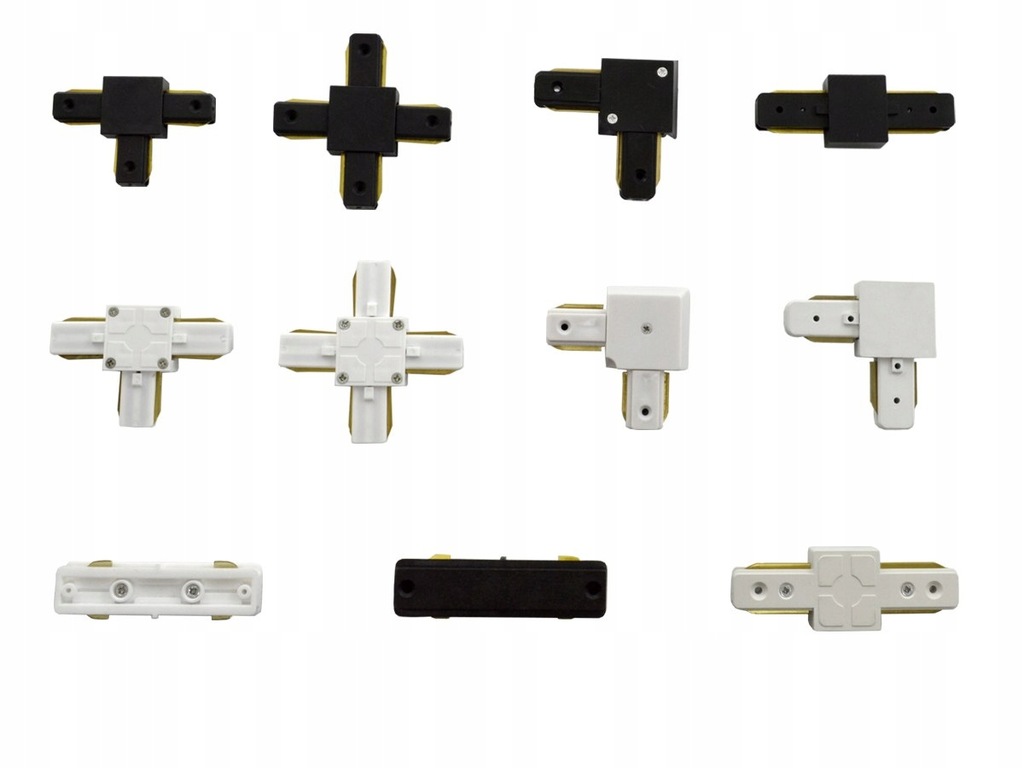na innych naszych aukcjach dostępne są kompletne zestawy lamp kierunkowych z listwami szynowymi i łącznikami, lampy kierunkowe białe i czarne emitujące światło ciepłe lub zimne, szyny w kolorze białym i czarnym oraz łączniki do szyn proste i narożne na 90 stopni
