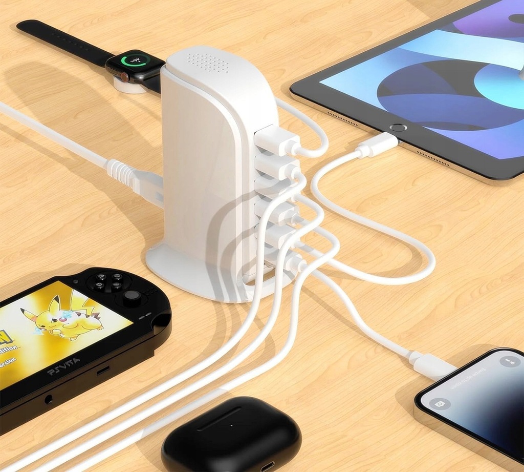 - Ładowanie 5 urządzeń jednocześnie – idealne do biura, domu i podróży