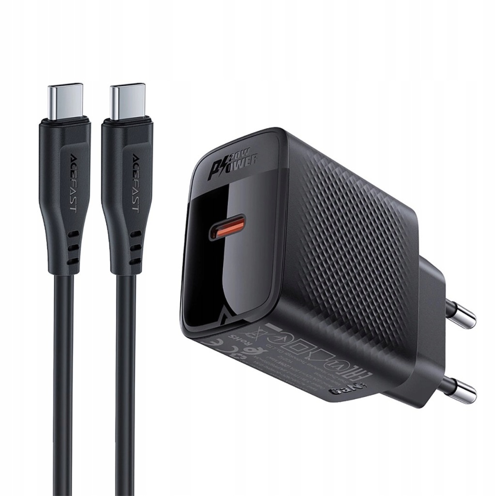 Ładowarka Acefast A82 sieciowa GaN USB-C PD 20W - czarna + kabel USB-C / USB-C