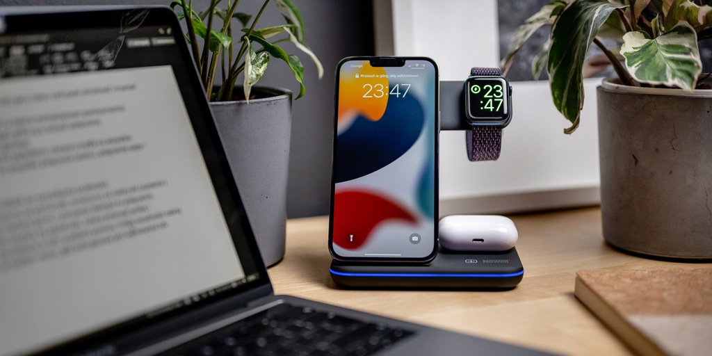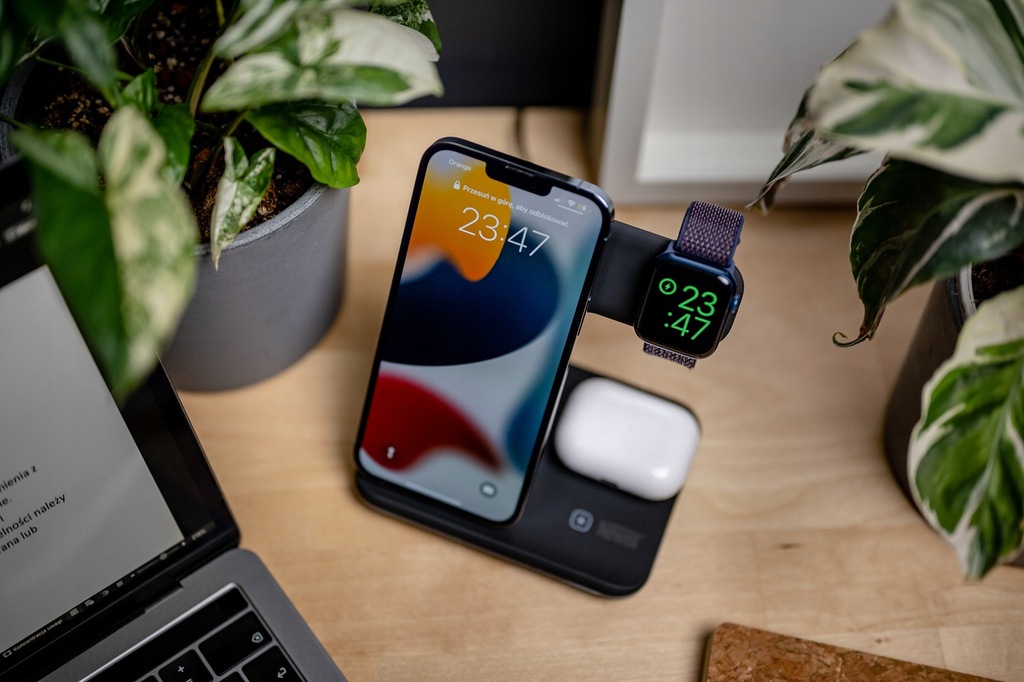 - stacja umożliwiająca bezprzewodowe ładowanie 3 urządzeń jednocześnie