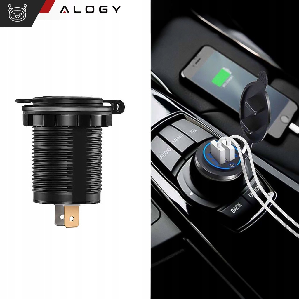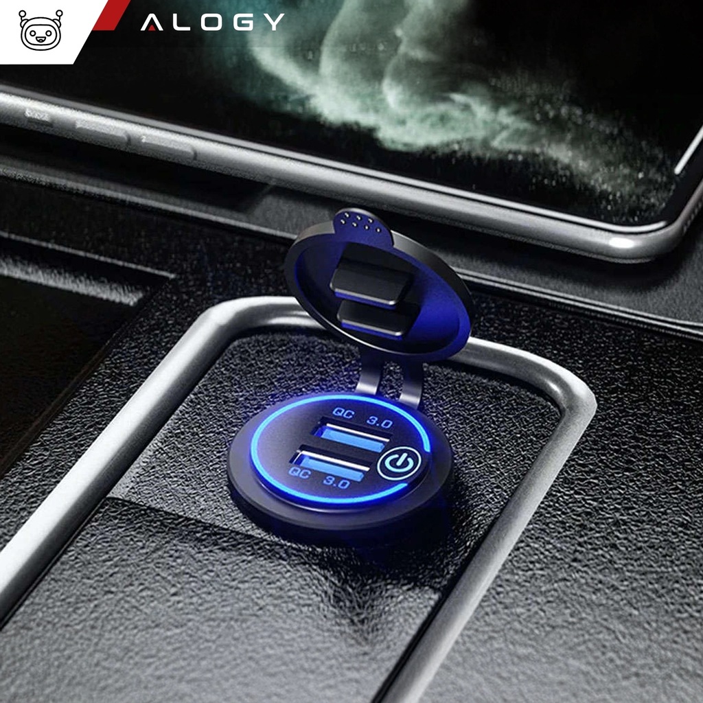 - Typ: Ładowarka samochodowa/motocyklowa Alogy 2x USB QC 3.0 LED