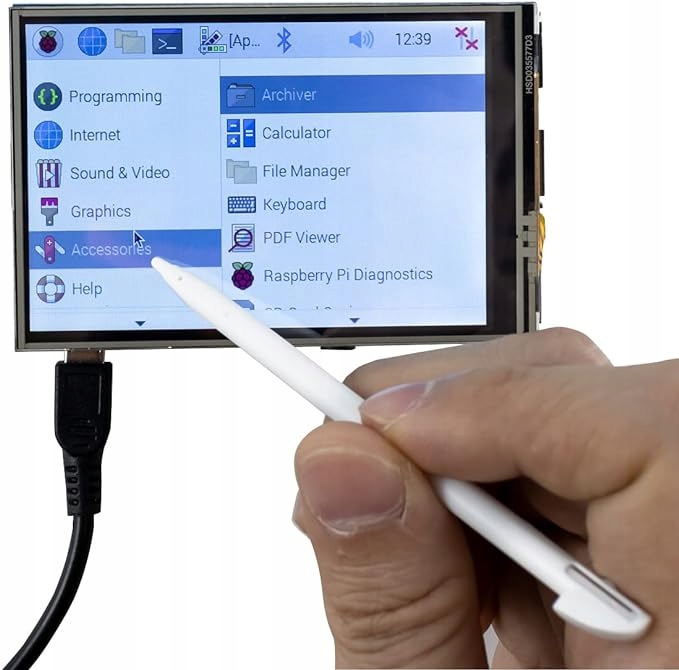 - Ekran jest sterowany przez opór i dotyka rysika.