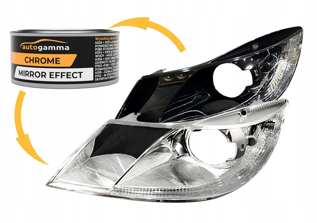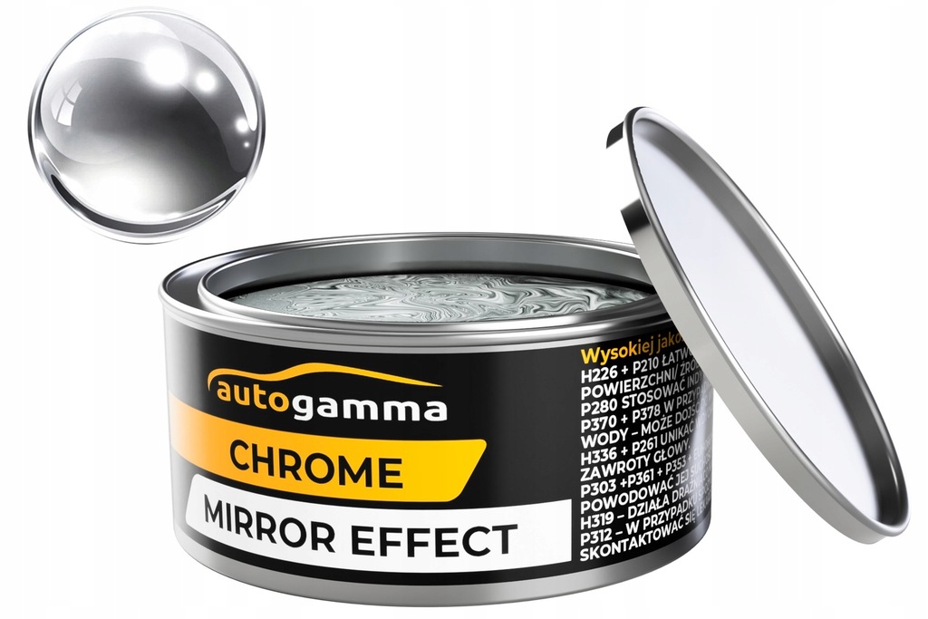 Gotowy lakier z efektem chromu pozwala osiągnąć znakomity wygląd lustrzanego odbicia - nawet 98% połysku prawdziwego chromowania. Chrome Mirror Effect jest intensywnie refleksyjną powłoką lakierniczą łatwą do zastosowania bez specjalistycznego sprzętu. Potrzebny do aplikacji jest jedynie standardowy pistolet do lakieru.