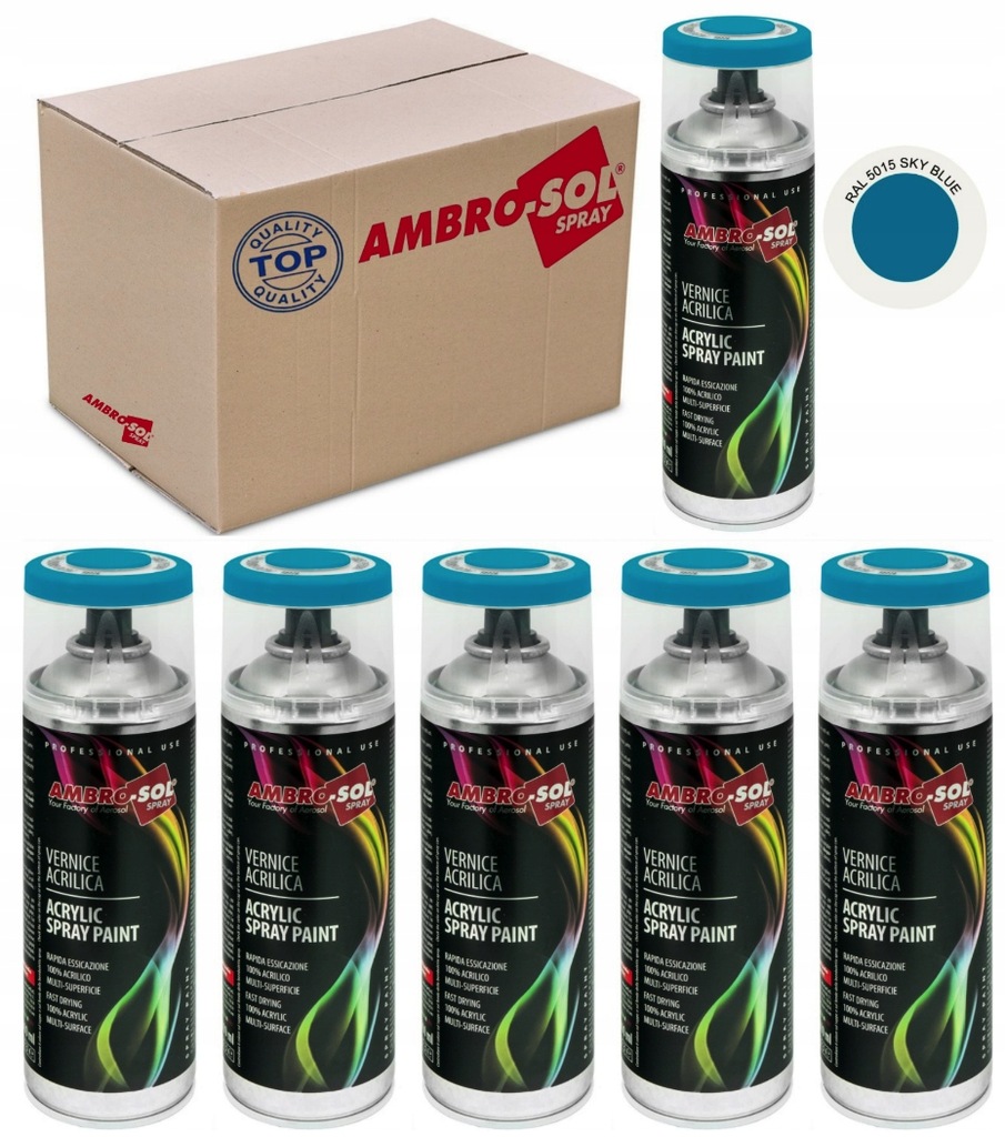 Szybkoschnący lakier akrylowy w aerozolu marki Ambro-sol w kolorze niebieskim, sky blue (paleta barw RAL 5015) przeznaczony jest do dekoracyjnego malowania i ochrony wszystkich powierzchni wewnętrznych i zewnętrznych. Doskonale przylega do powierzchni jak drewno, metal, szkło, kamień, karton, papier, eternit, porcelanę i wiele tworzyw sztucznych. Lakier akrylowy jest idealnym rozwiązaniem do dekoracyjnego malowania np. rowerów, motocykli, kasków, masek, ramek, oraz ozdób i dekoracji.