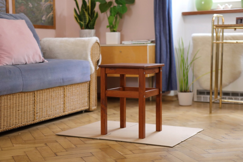 Malowanie zacznij od oszlifowania powierzchni papierem ściernym o granulacji co najmniej "120". Im wyższa granulacja, tym papier jest drobniejszy, a powierzchnia po szlifowaniu bardziej gładka. Następnie dokładnie odpyl powierzchnię, najlepiej miękką, suchą szmatką. Teraz możesz zacząć malowanie. Nanieś cienką warstwę, dzięki temu zminimalizujesz ryzyko zacieków. Po wyschnięciu, ponownie oszlifuj papierem granulacji "180". Dzięki temu uzyskasz lepszą przyczepność drugiej warstwy. Ponadto, usuniesz podniesione, luźne włókna drewna, które pod wpływem wilgoci z pierwszej warstwy pęcznieją i unoszą się, tworząc coś w rodzaju "tarki". Dalej ponownie odpyl miękką szmatką i nałóż drugą warstwę. Po malowaniu odłóż do wyschnięcia.