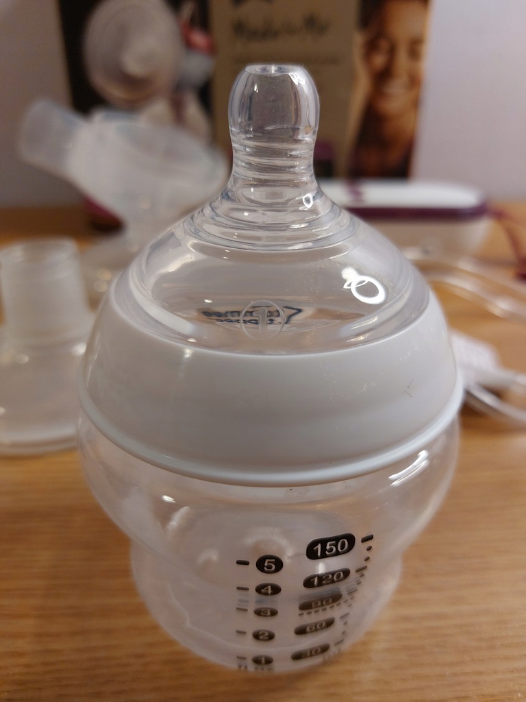 Zestaw ma także buteleczkę ze znacznikami ilości, dzięki czemu wiesz, ile mleka wypompowujesz.