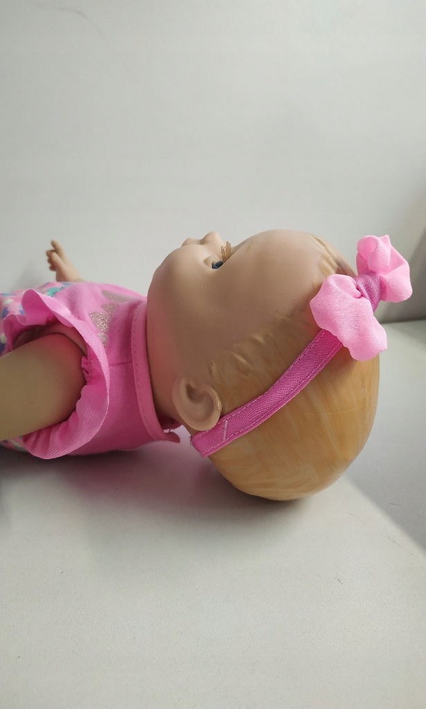 Uwagi: Lalka ma lekkie przetarcia na włosach związane z magazynowaniem. Nie zamykają jej się oczy. Realne zdjęcia dodane w opisie.
