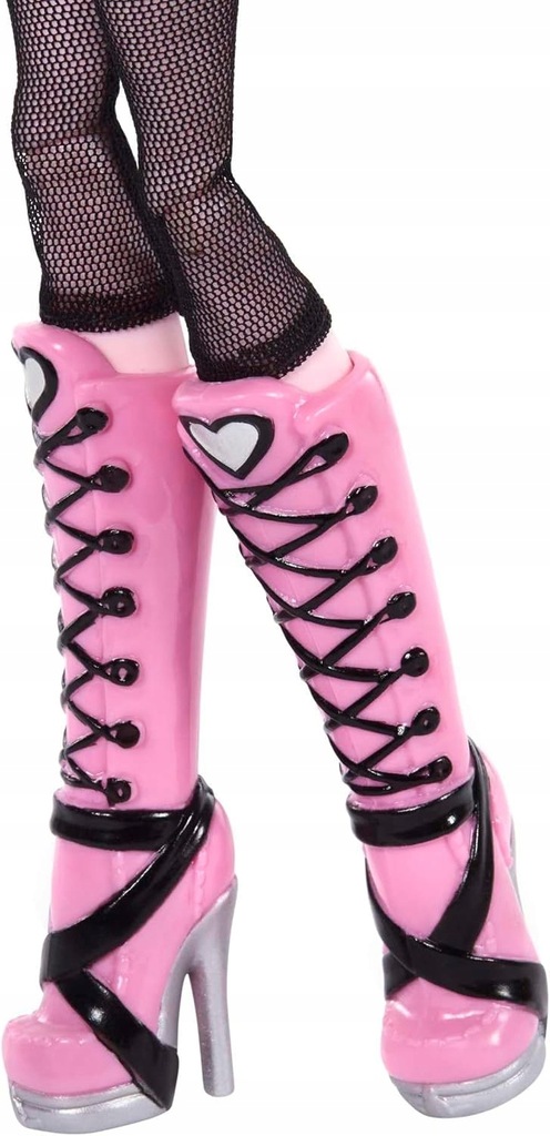 Upiornie modne sznurowane buciki i zabójczo stylowe akcesoria uzupełniają strój, a wampiryczne detale podkreślają jej potworny rodowód.