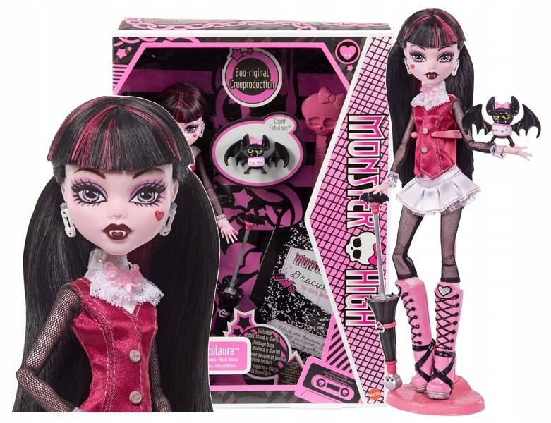 Draculaurze towarzyszy jej uroczy zwierzak, Hrabia Nietoperz Wspaniały, a w zestawie są też sekretny pamiętnik i szczotka do włosów.