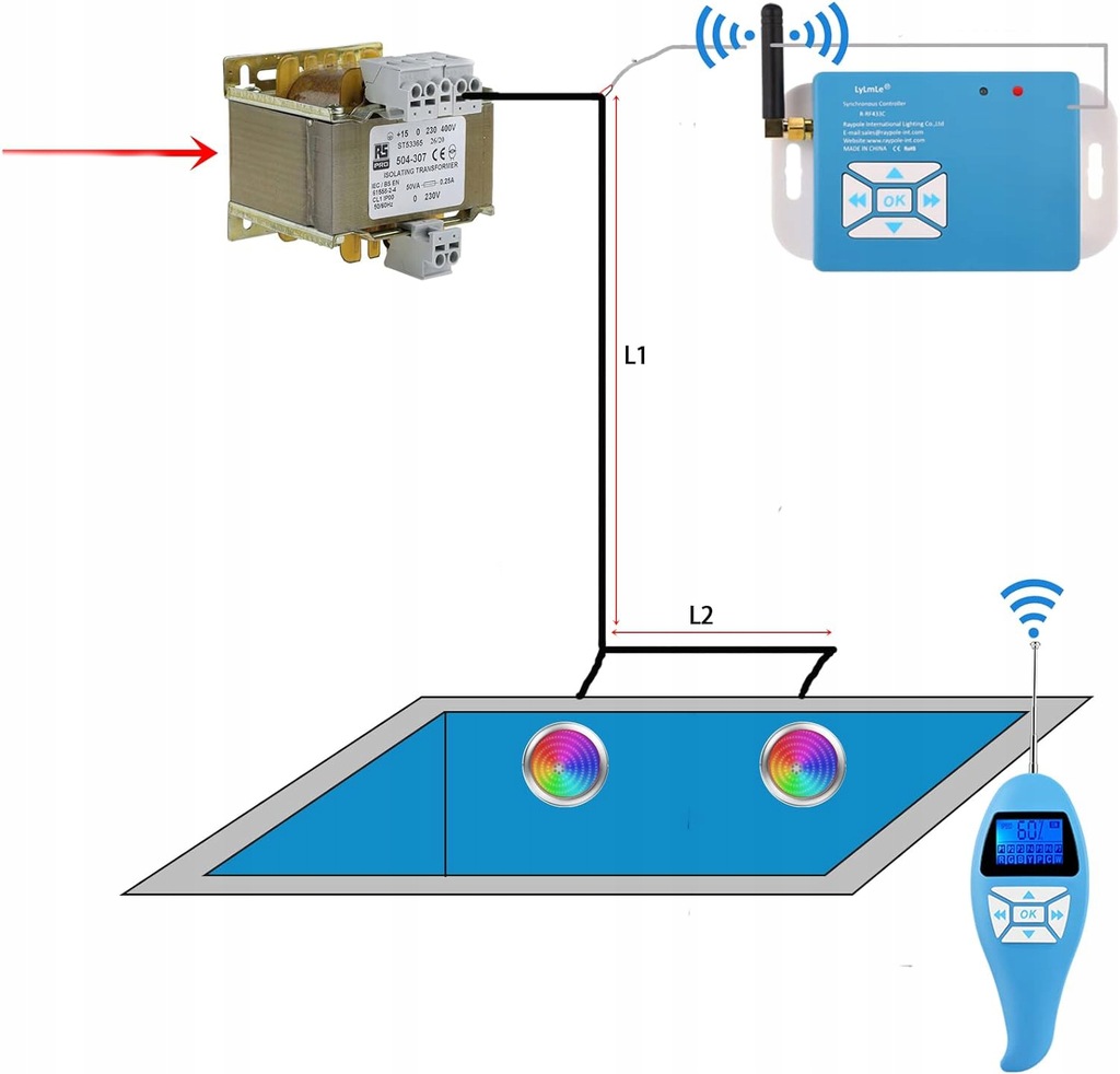 Bezpieczne napięcie pracy – 12 V niskonapięciowe wyjście, które gwarantuje bezpieczne oświetlenie pod wodą. Ta seria lamp basenowych musi być podłączona do separacyjnego transformatora bezpieczeństwa o podwójnym uzwojeniu z wyjściem 12 V AC. Niekompatybilne z transformatorami elektronicznymi. (Transformator i wnęki montażowe nie są dołączone).
