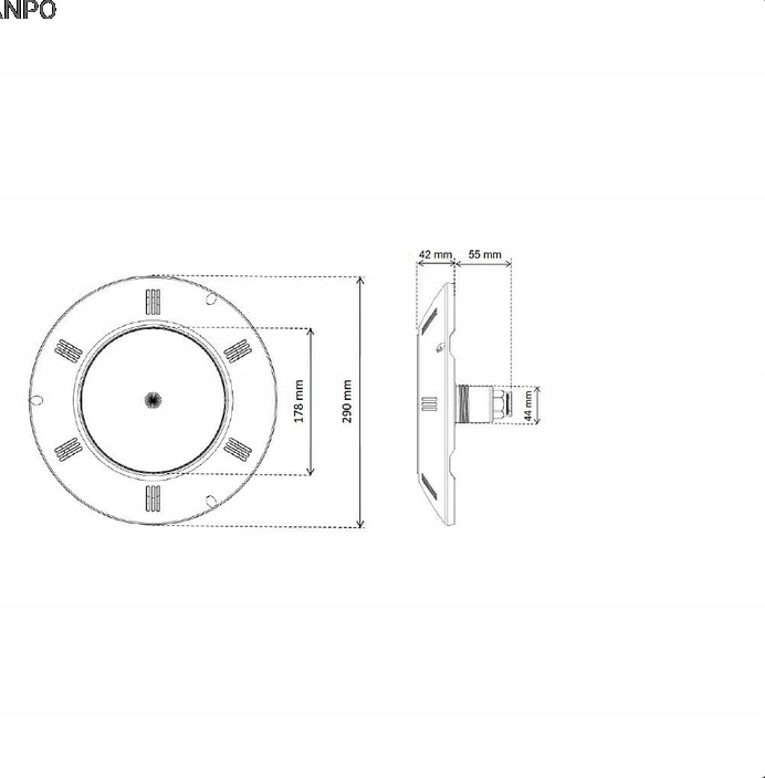 Lampa montowana jest w ścianie basenu. Do montażu lampy konieczny jest dodatkowy zakup transofrmatora i dyszy wylotowej de luxe którą montuje się w ścianie basenu i w nią należy wkręcić lampę z oringiem uszczelniającym. Dzięki temu rozwiązaniu montaż lampy w miejscu dyszy nie jest skomplikowany.