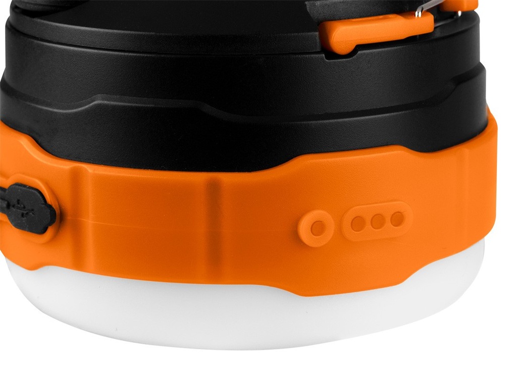 Lampa biwakowa 500 lumenów, funkcja lampy + latarki, funkcja powerbank, ładowanie USB C, ładowania dodatkowe dynamo, SMD+XPE LED, materiał ABS+PC, wymiary 89x57.5mm, waga 202g, bateria Li-ion 3.7V 2000mAh 18650, złącze USB C, przewód USB C w zestawie, wskaźnik naładowania baterii, wskaźnik ładowania, hak/uchwyt do powieszenia, czas ładowania 2,5h, tryb niski lampa: 70 lumenów/9 godzin, tryb wysoki lampa: 500 lumenów/1 godz, latarka tryb niski 60 lumenów/10,5 godziny, latarka tryb wysoki: 110 lumenów/4,5 godziny, funkcja czerwonego światła (dwuklik) + czerwony strobe, kolor na naturalny 4000K, kolor ciepły 3000K, kolor zimny 6500K