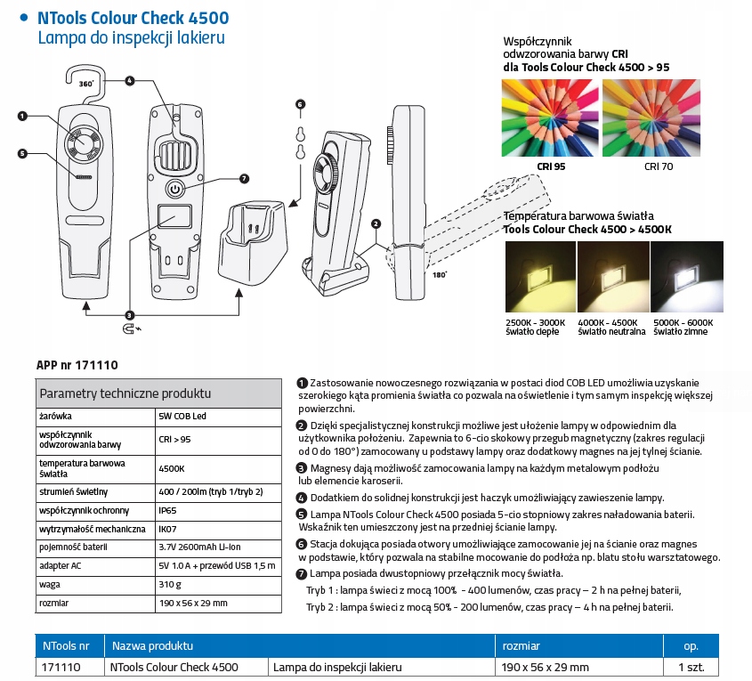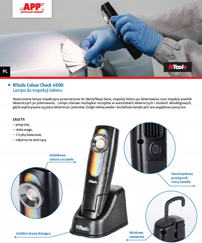 NTools Colour Check 4500 to nowoczesna lampa inspekcyjna przeznaczona do identyfikacji barw, inspekcji koloru po lakierowaniu oraz inspekcji powłok lakierniczych po polerowaniu.