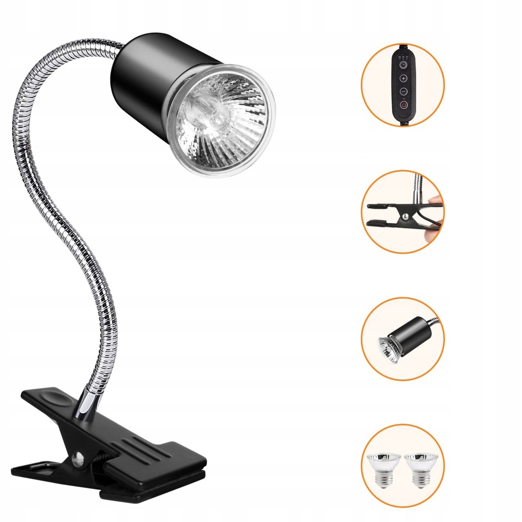 - Szerokie zastosowanie: Lampa cieplna nadaje się do większości gadów, żółwi, jaszczurek, węży, pająków, ptaków, płazów. Gniazdo E27 może być również używane z normalnymi żarówkami E27 do oświetlania roślin wewnętrznych, pracowni artystycznych, sypialni itp.
