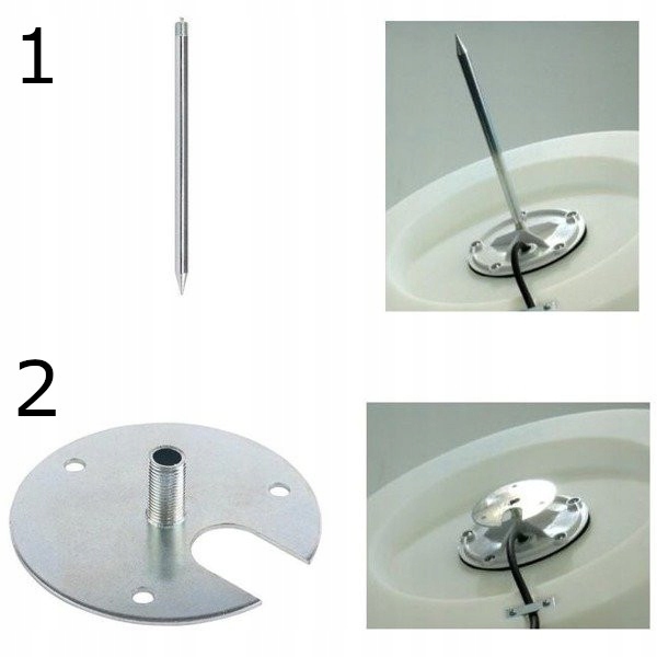 2 - Na twardym podłożu tj beton, drewno. Podstawkę montujemy za pomocą kołków/ wkrętów następnie okręcamy kule na gwint.