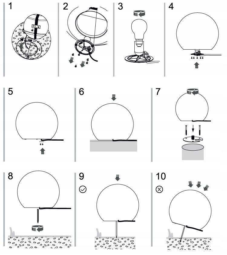 - Oryginalnie zapakowaną lampę kule ogrodową z zainstalowanym fabrycznie kablem 3m