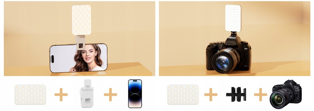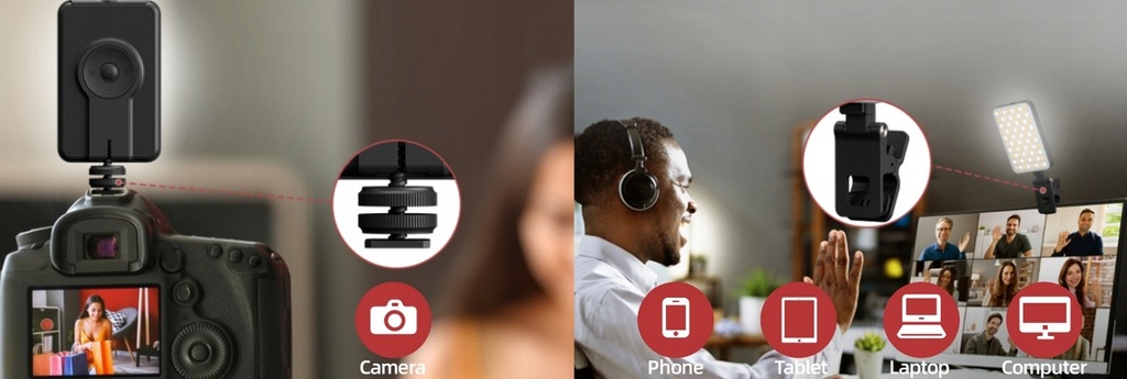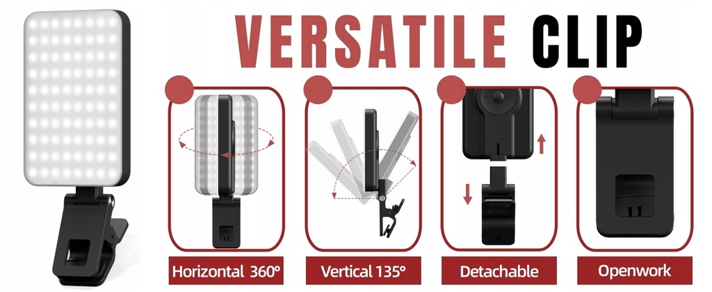 Wyjmowany klip pozwala na umieszczenie światła na dowolnym urządzeniu. Można go obracać pionowo i poziomo, oświetlając piękno pod dowolnym kątem.