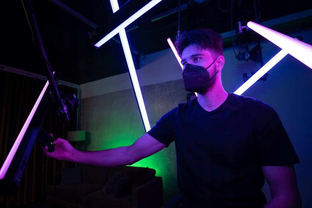 Charakterystyczny kształt miecza świetlnego otworzy przed Tobą zupełnie nowe sposoby kreacji unikalnych kadrów. Kolorowe światło świetnie sprawdzi się w nowoczesnych reklamach lub teledyskach, a samo urządzenie może być nie tylko narzędziem, ale i... bohaterem filmów lub zdjęć. Lampę LED Amaran T4c możesz z powodzeniem wykorzystać jako element scenografii, który przyciągnie widzów i na długo zapisze się w ich pamięci.